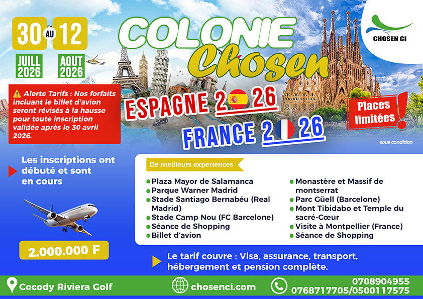 ACCRA / FRANCE / Espagne 2026 : Inscrivez vos Enfants à la Prochaine Colonie !